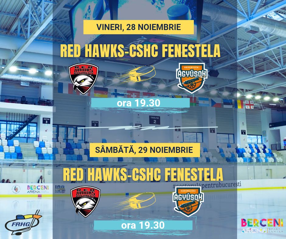 Vineri şi sâmbătă, la Berceni Arena, joacă Red Hawks Bucuresti şi CSHC Fenestela.